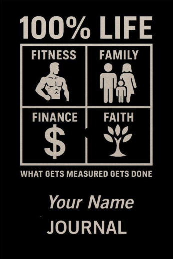The 100% Life Journal isn’t just a notebook — it’s your personal blueprint for transformation. Designed to work hand-in-hand with *The 100% Life* framework, this journal helps you turn inspiration into consistent action across the Four Pillars: Fitness, Finance, Family, and Faith.